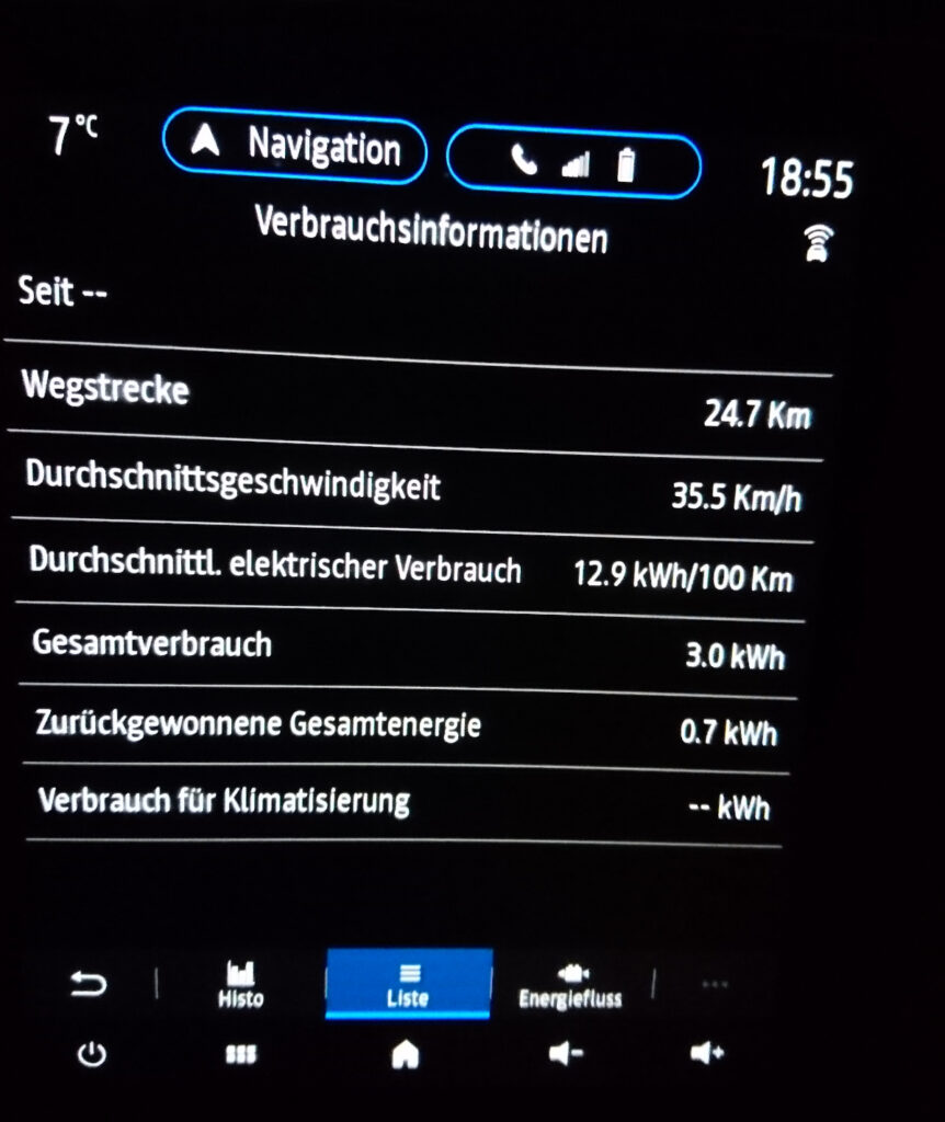 Wenn ich die Renault-Software richtig verstehe, ist ein Verbrauch von 12,9kWh/100km der kleinstmöglich anzeigbare Verbrauch. Na wie schön, dass dies nur die Anzeige ist und nicht der reale Verbrauch! Real sind es dann doch 12,2kWh/100km!