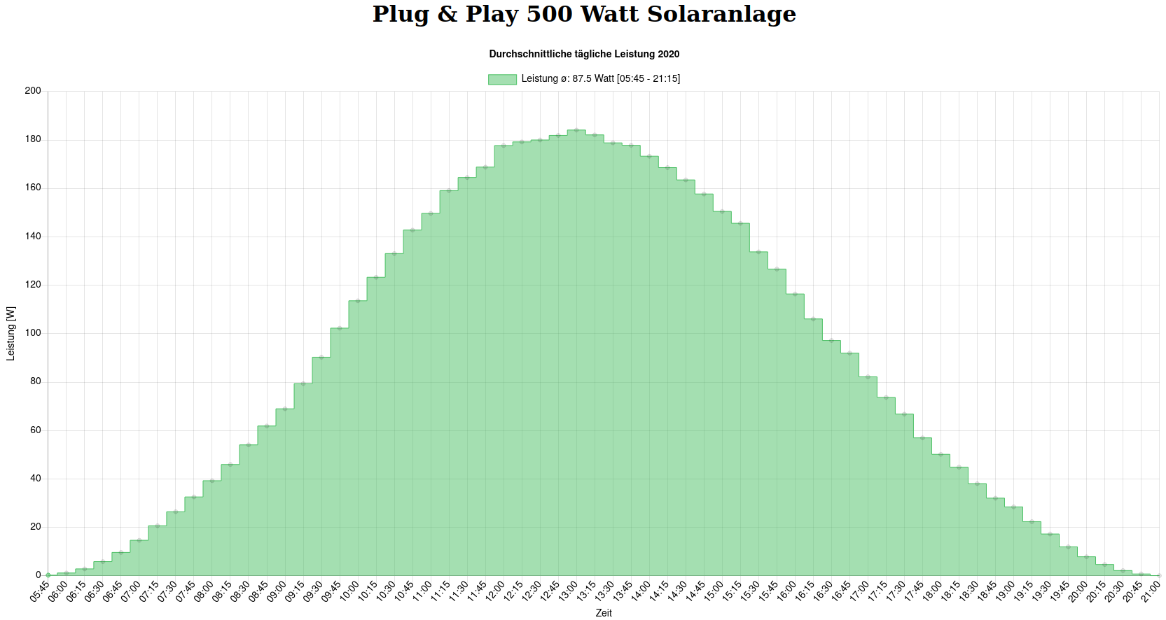 Es scheint überraschend zu sein, dass die durchschnittliche Leistung im Sommer kleiner ist als im Frühling. Dies lässt sich aber leicht durch die verminderte Effizienz der Photovoltaik-Module bei höheren Temperaturen erklären. Die Sonneneinstrahlung ist in den Monaten Juni, Juli und August höher als in den Monaten März, April und Mai. Jedoch mindern die hohen Temperaturen im Sommer im Vergleich zum Frühling den Ertrag an eigenem Sonnenstrom.
