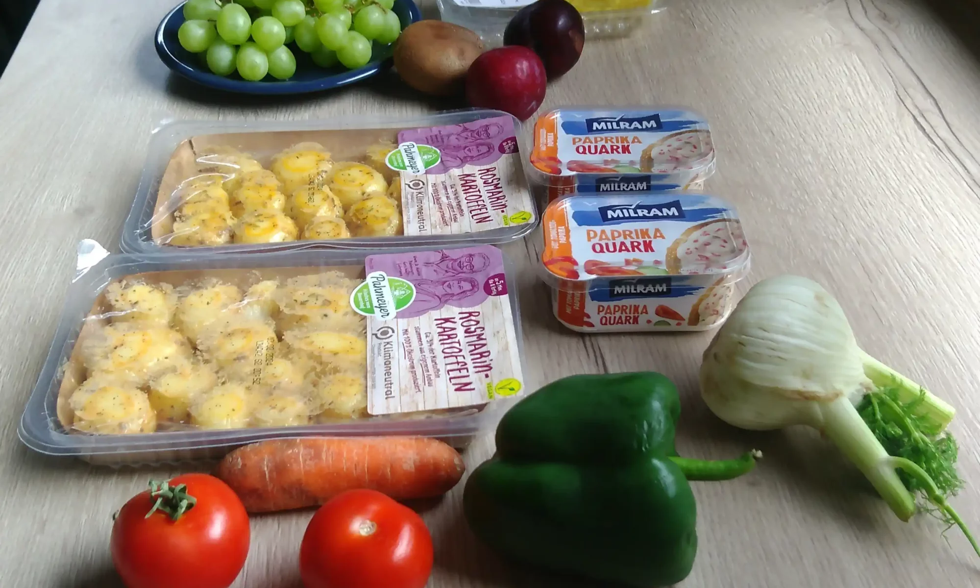 Heute am 10. Februar 2024 können wir alle auf dem Foto gezeigten Lebensmittel für unser Mittagessen verwenden. Somit gibt es heute Rosmarinkartoffeln, mit Paperika, Karotten, Zwiebel und Fenchel Gemüsepfanne sowie Paprikaquark dazu.
